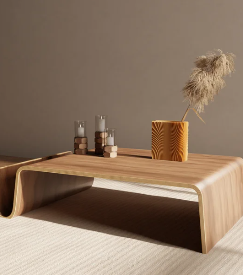 🪵 Organic Layered Texture – Showcasing a warm, natural wood tone, the visible layered texture adds an organic and sophisticated element, highlighting the innovative slice-form construction.